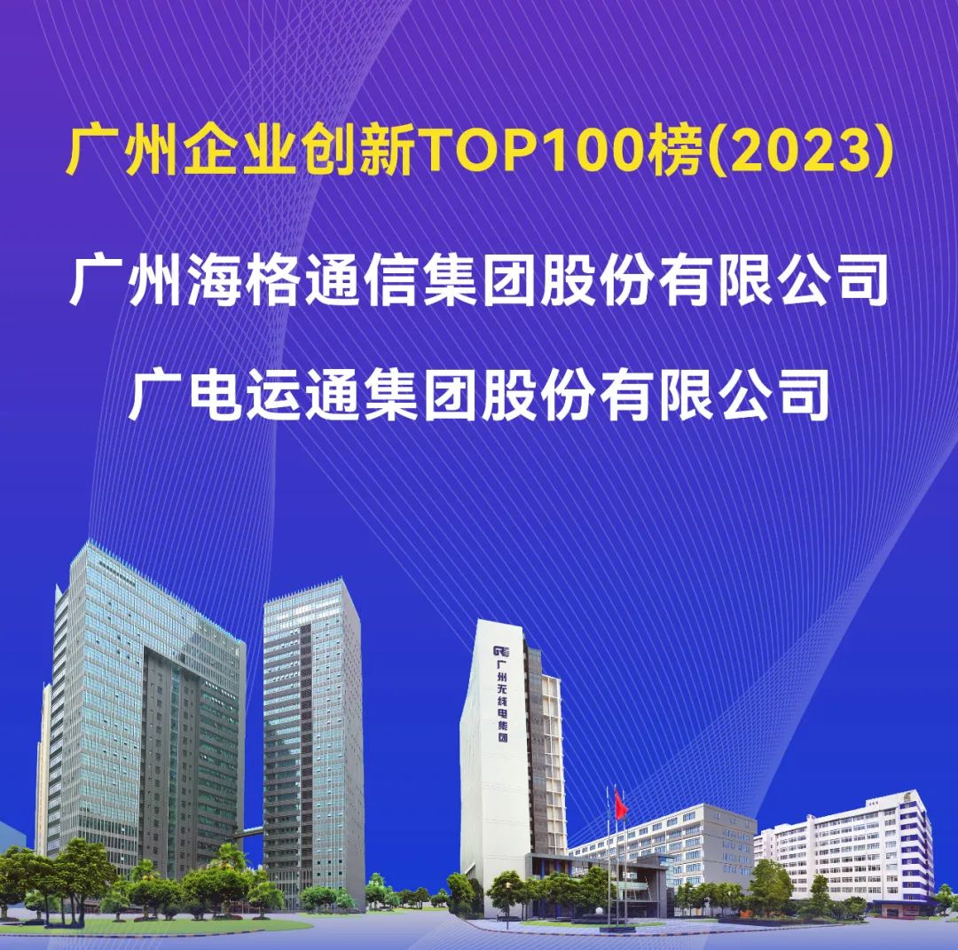 2023年12月22日,广州日报数据和数字化研究院(GDI智库)发布广州企业创新TOP100榜(2023),广州无线电集团成员企业海格通信(SZ 002465)和广电运通(SZ 002152)入选广州企业创新TOP100榜。