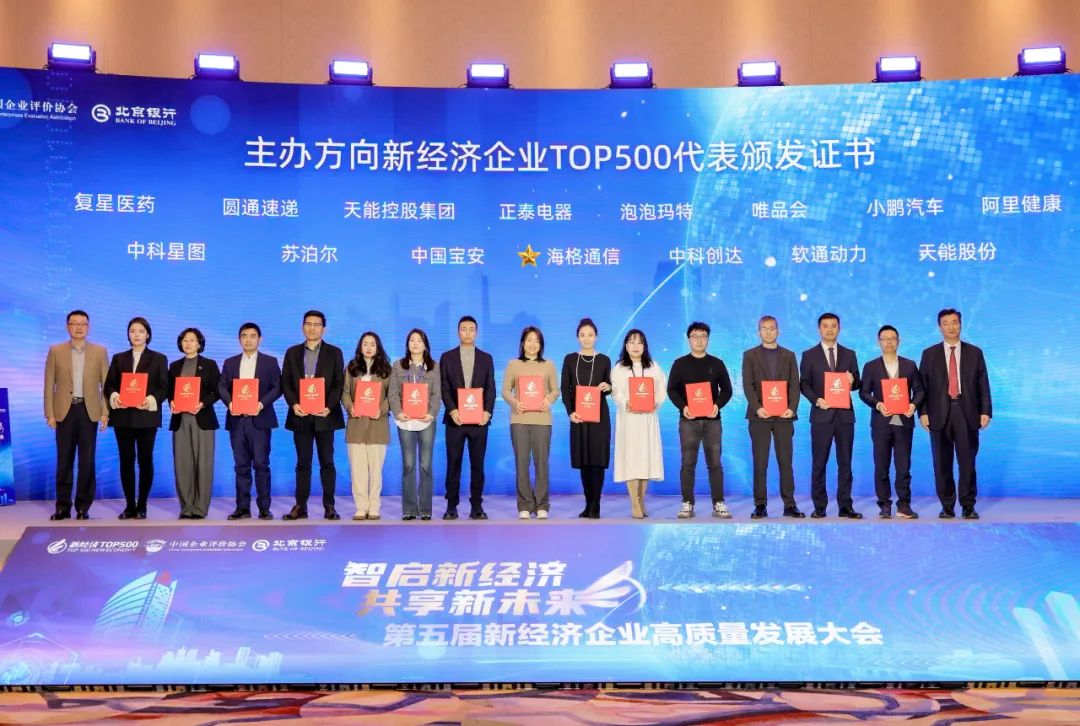 2月26日,由中国企业评价协会主办,北京大学国家发展研究院和中指研究院联合支持的第五届新经济企业高质量发展大会在上海隆重举行,海格通信(SZ 002465)受邀参会,并再次荣登“中国新经济企业TOP500”榜。