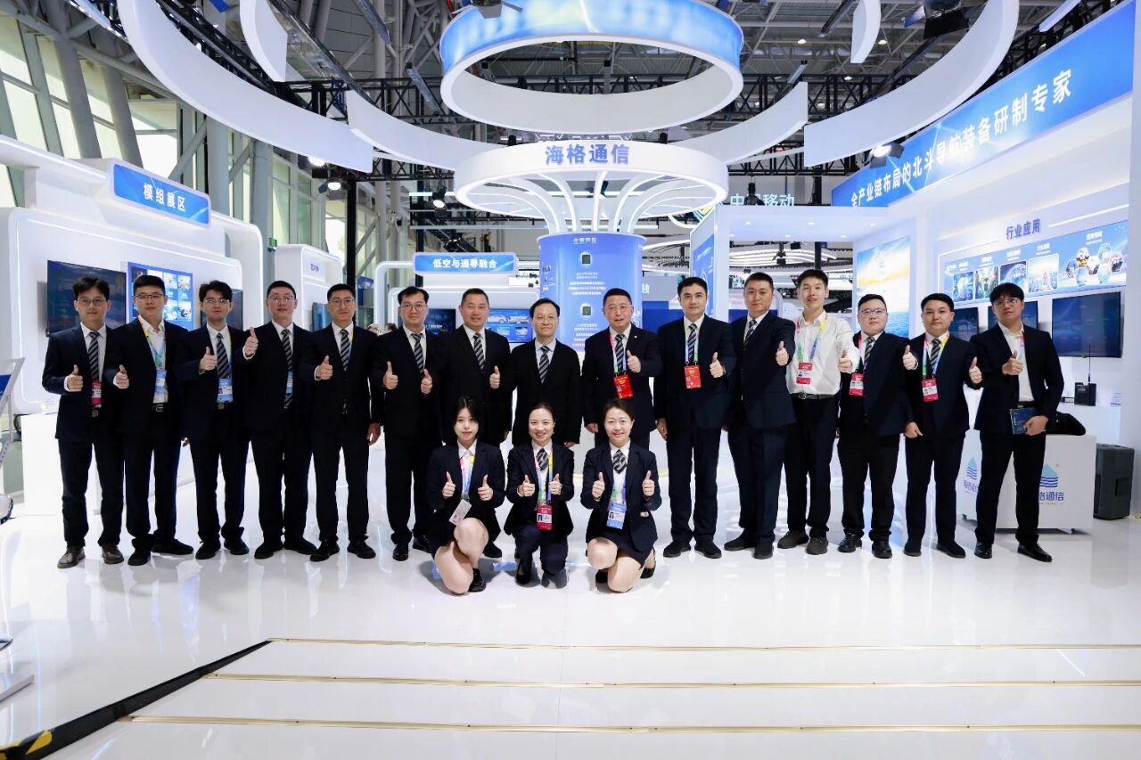海格通信亮相峰会。图为夏坚、余青松与海格通信参展团队在展台合影