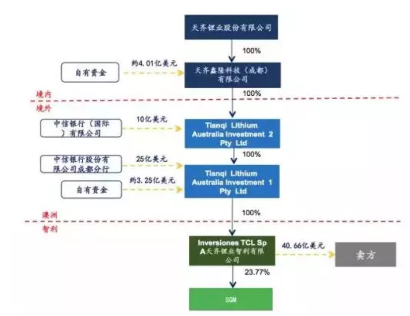 那么收购SQM的钱从哪来?除需支付交易对价40.66亿美元以外,还需支付融资服务费、交易顾问费用和印花税等交易税费预计约1.6亿美元,加起来共需支付资金总额约42.26亿美元。