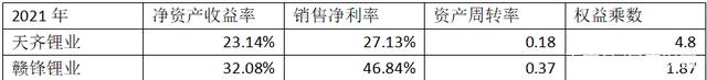 笔者将天齐锂业与赣锋锂业的2021年净资产收益率按照杜邦分析法拆解如下: