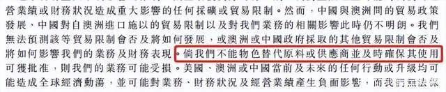 除了,锂三角的政治倾向,我们和对岸的关系、中澳摩擦可能对天齐锂业在澳洲的锂矿的输出带来阴霾。天齐锂业也认识到这一点,所以《招股书》上强调目前面临的风险,暗指追求澳洲以外锂矿资源的重要性。