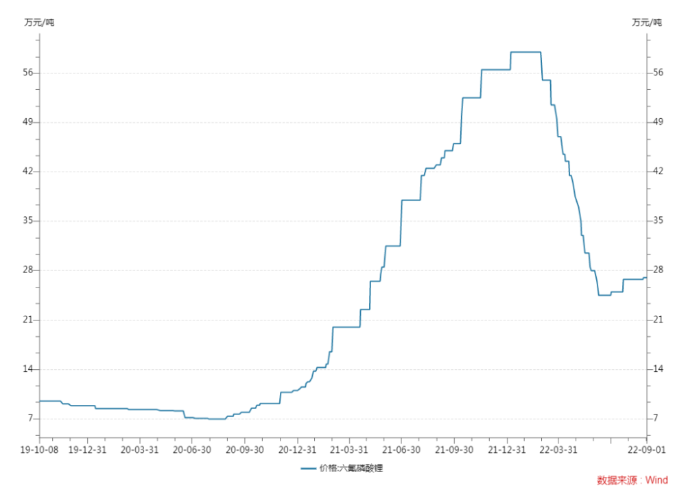 业绩的高增与六氟磷酸锂价格高位离不开关系,在锂猫君此前《电解液“二哥”,放弃了关键自研》中就提到,六氟磷酸锂是电解液的关键材料,其价格往往也决定了电解液的价格走势。