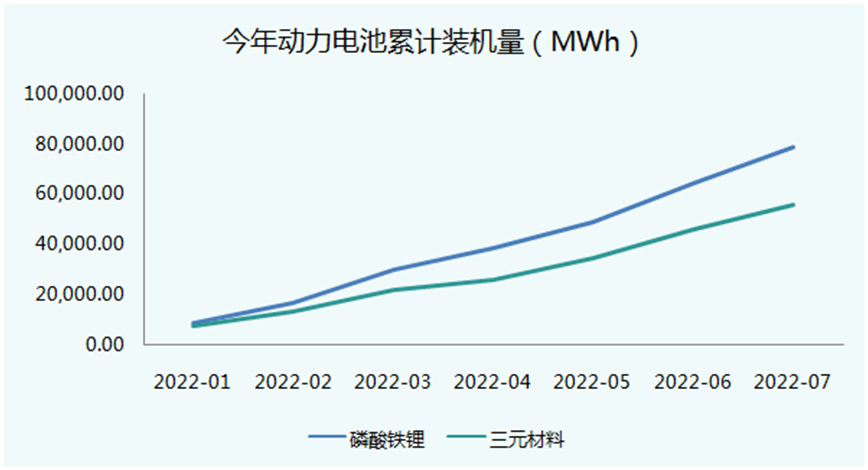 去年正式反超三元材料后,磷酸铁锂也将这份优势延续到了今年。