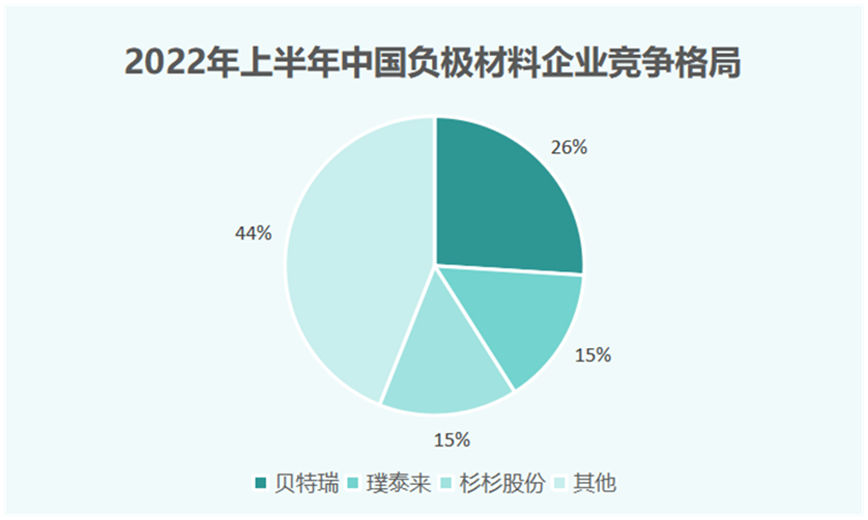 而未来负极材料的需求仍会持续扩张,但在能耗双控的背景下,石墨扩产难度却也进一步攀升,加上石墨化成本占比高、人造石墨工艺复杂,新入局玩家风险加大,未来行业格局将进一步向头部公司集中,贝特瑞、璞泰来、杉杉股份三家公司三足鼎立的局面仍会继续延续(目前共计占据负极材料市场56%的份额)。
