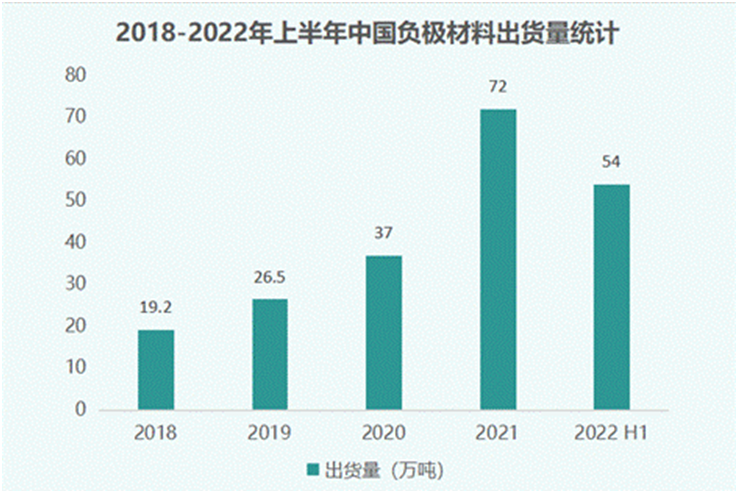 据工信部数据,今年上半年,锂电池负极材料产量达54万吨,同比增长68%,预计2022年国内负极材料全年销量有望突破115万吨。