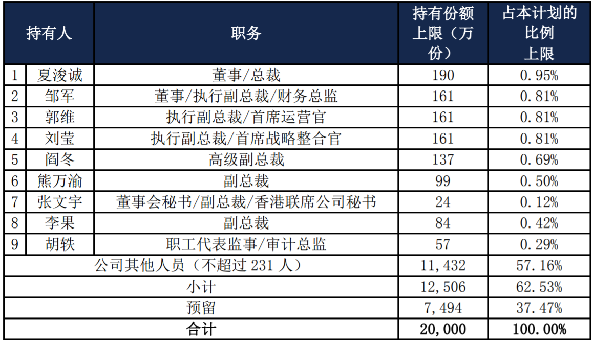 根据员工持股计划,单个员工所持员工持股计划份额对应的股票总数累计不超过公司股本总额的1%。其中占员工持股计划比例上限最多的是天齐锂业总裁夏浚诚,持有份额上限为190万份。