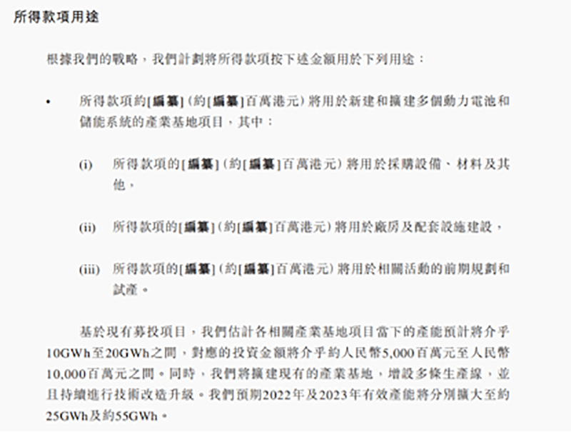 目前,中创新航基于现有募投项目,估计各相关产业基地项目产能10GWh至20GWh,预期2022年及2023年有效产能将分别扩大至25GWh及约55GWh。