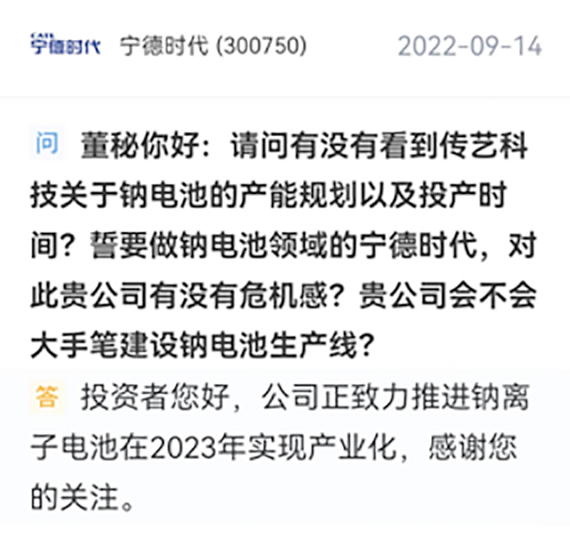 同时,包括宁德时代在内的动力电池企业,正在寻求原材料替代品,并推出钠电池。宁德时代在互动平台表示,正推进钠离子电池在2023年实现产业化。