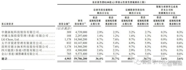 上述基石投资者一共认购49亿港元,其中,中创新航科技股份有限公司认购3.89亿港元,中国太保投资管理(香港)有限公司认购1.88亿港元,LG Chem认购11.78亿港元;