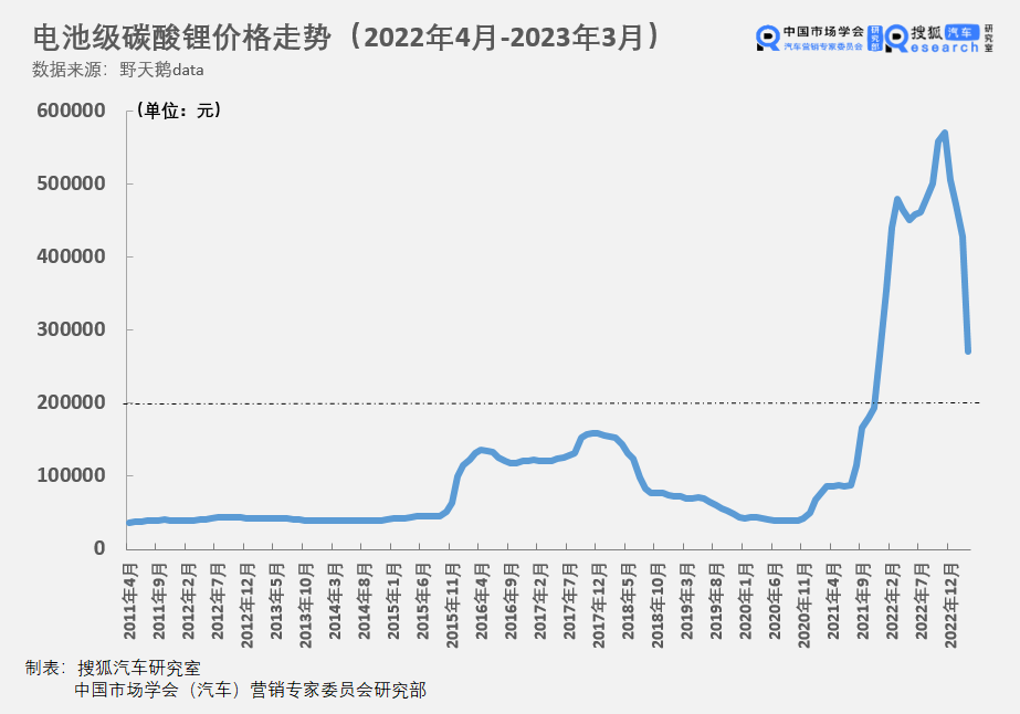 而从今年年初开始锂价已经开始一路下跌,到目前为止,电池级碳酸锂已经跌到了30万元/吨以内,相对于价格高位时近60万元/吨的水平,现在的碳酸锂价格已经跌去约50%的幅度。