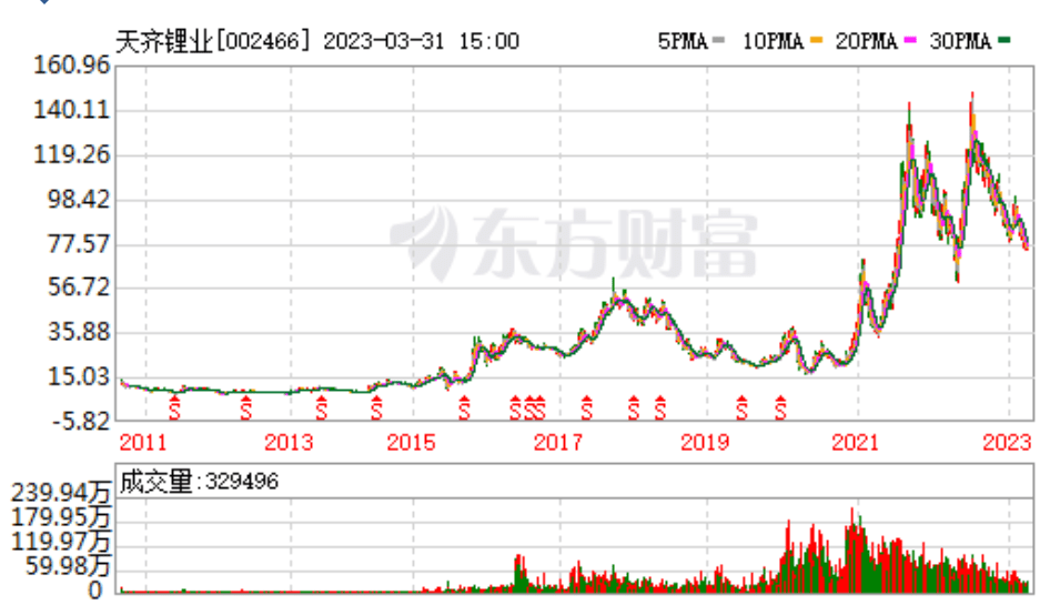 从长期来看,天齐锂业在资本市场的表现受锂价的周期性波动影响较大。