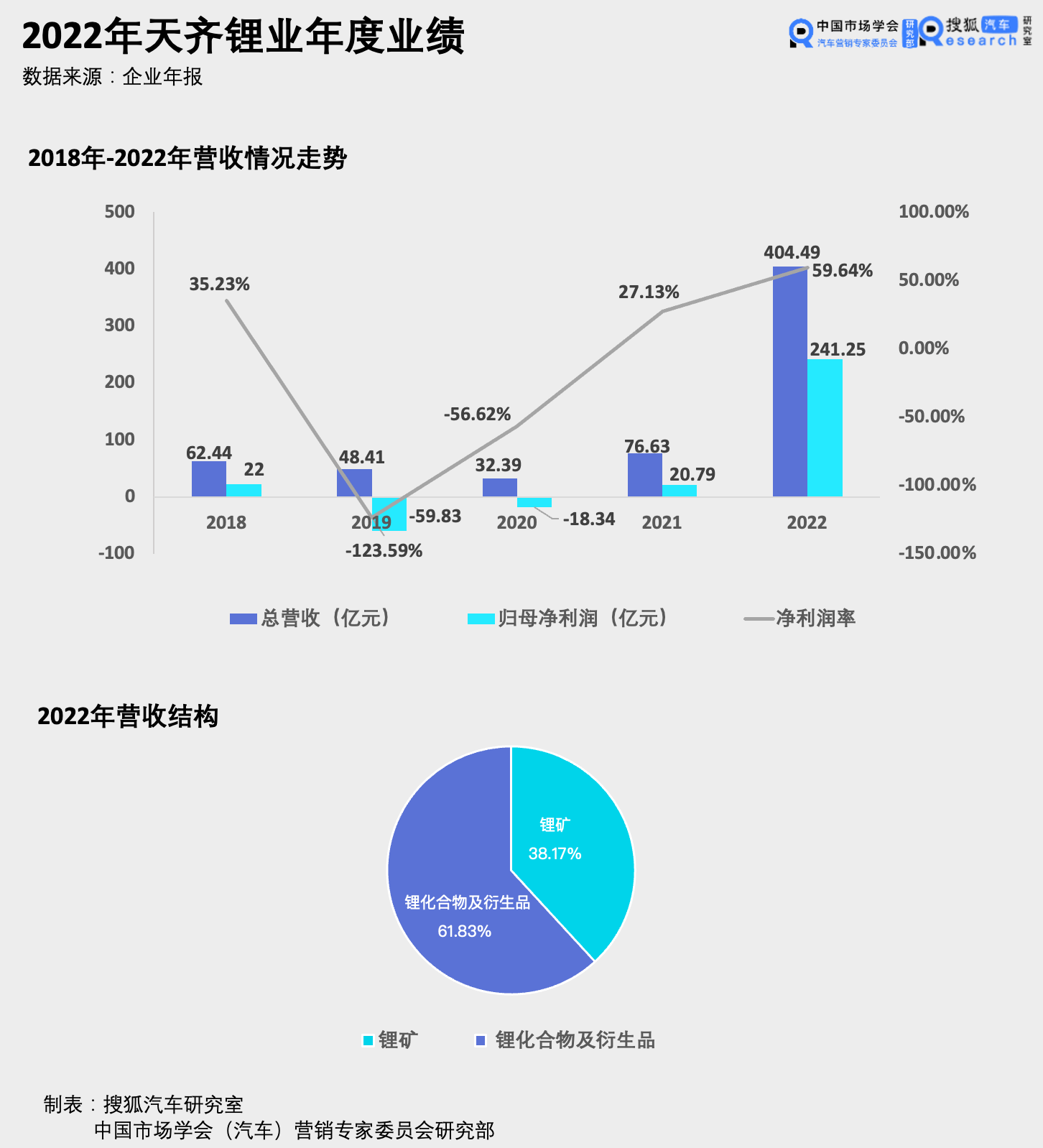 3月31日,天齐锂业发布了2022年年度报告,报告期内公司实现营业收入404.49亿元,同比增长427.82%;归母净利润241.25亿元,同比增长了1060.47%。