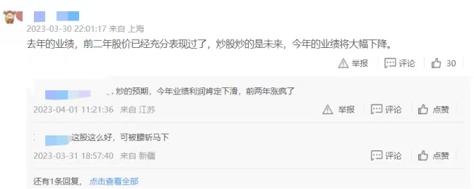 对此,网友直言,“去年的业绩,前两年的股价已经充分表现过了,炒股炒的是未来……”