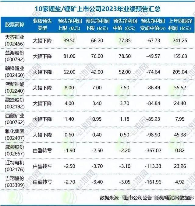 新能源正前方才追踪了天齐锂业和赣锋锂业的三季报没多久(文章很早就写了,只是因为排期问题拖到了年前才发布),才感叹了锂矿行业的寒气逼人,近段时间锂盐双龙公布的2023年年度业绩预告,就已经不是寒气逼人了,简直是冰冻三尺!