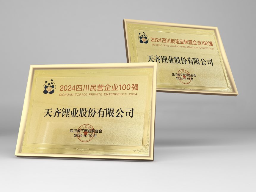 10月29日,四川省工商联发布“2024四川民营企业100强”,天齐锂业再次上榜,荣登第9位。