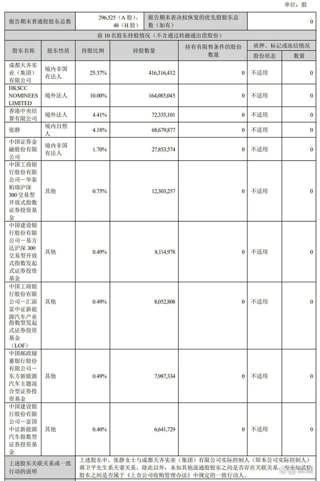 截至2024年6月30日,天齐锂业股权结构