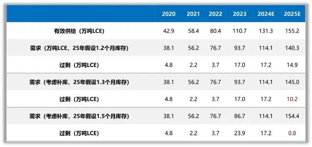 当前碳酸锂供需形势不容乐观。东吴证券统计显示,若今年行业维持 1.2 个月库存,碳酸锂供给过剩近 15 万吨;库存提至 1.3 个月,过剩约 10 万吨;仅当补库存需求达 1.5 个月水平,供需才能基本平衡。