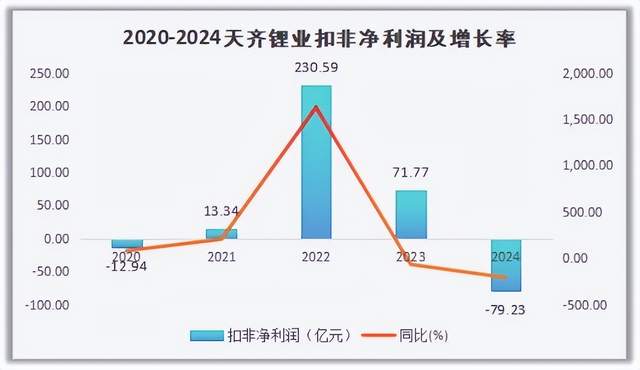 2022年赚231亿元、2023年赚72亿元、2024年亏79亿元,天齐锂业的业绩着实有些魔幻。