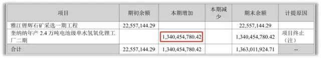 天齐锂业在建工程减值情况,数据来源:公司公告