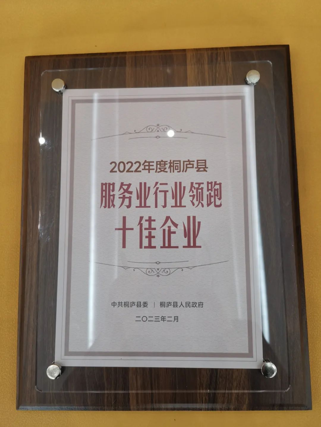 杭州申瑞快递服务有限公司荣获“2022年度桐庐县服务业行业领跑十佳企业”。