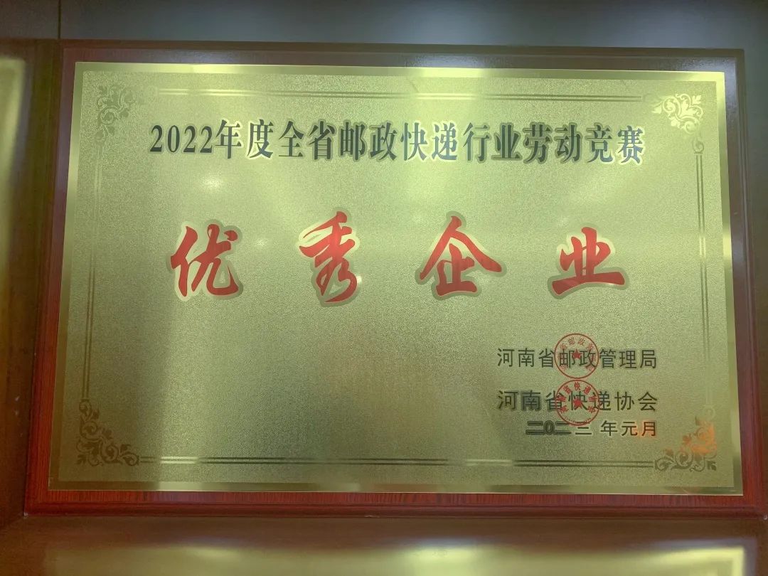 河南省公司获评2022年度全省邮政快递行业劳动竞赛“优秀企业”称号。