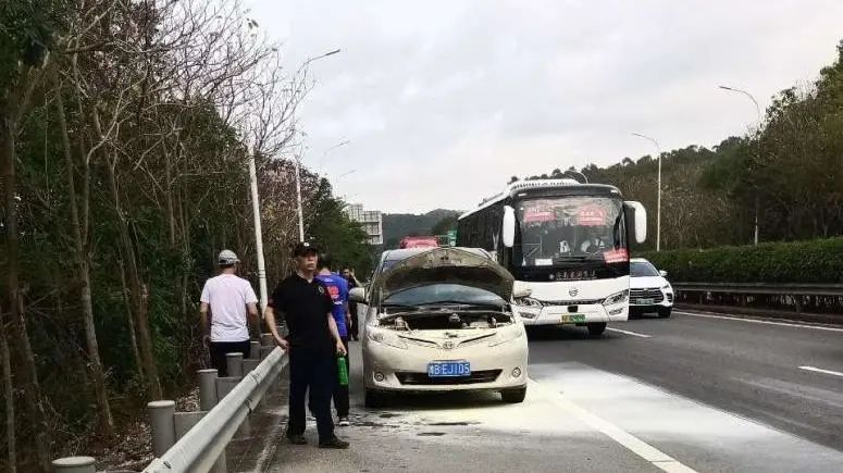 近日,申通快递深莞车队驾驶员邓喜军和罗承志在海三高速马点岭路段执行运输任务时,发现路边一辆私家车自燃,当时仅有车主和另一名油罐车司机在现场救火,因火势较大,私家车仅配备小型灭火器,无法彻底控制现场火势,情况十分危急。