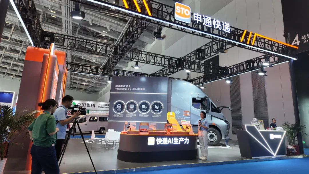 展台中央的电动智卡成为参观焦点。申通快递作为全国首家规模化应用新能源重卡的快递品牌,为智能驾驶新能源重卡在快递场景的应用树立了新标杆。