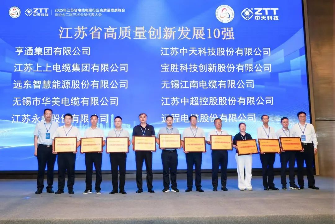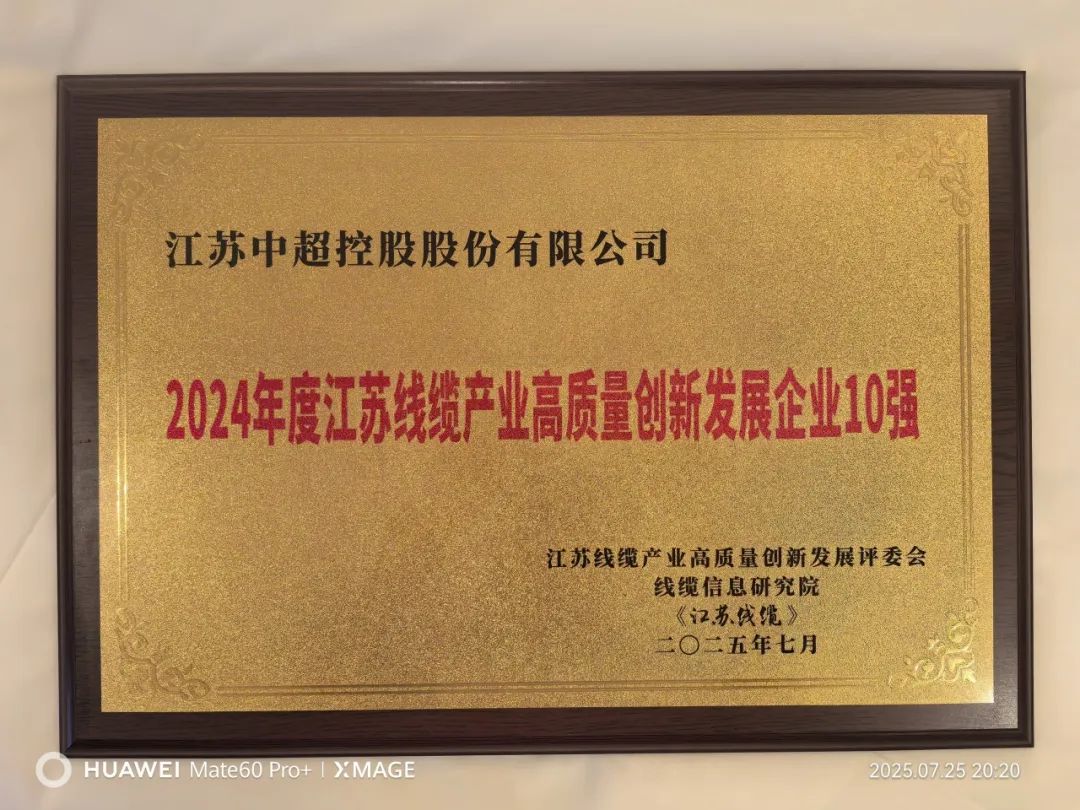 “江苏线缆产业高质量创新发展企业10强”评选,是江苏省内衡量线缆企业综合创新实力与发展质量的重要标杆。此次获评,是对中超控股长期以来坚持创新驱动发展战略、深耕线缆主业、持续推动产业升级的权威肯定。公司始终将技术创新、管理创新、模式创新置于核心位置,在智能制造、绿色生产、高端产品研发、市场拓展等方面不断取得突破,有效提升了核心竞争力,为江苏省线缆产业的高质量发展贡献了坚实的“中超力量”。