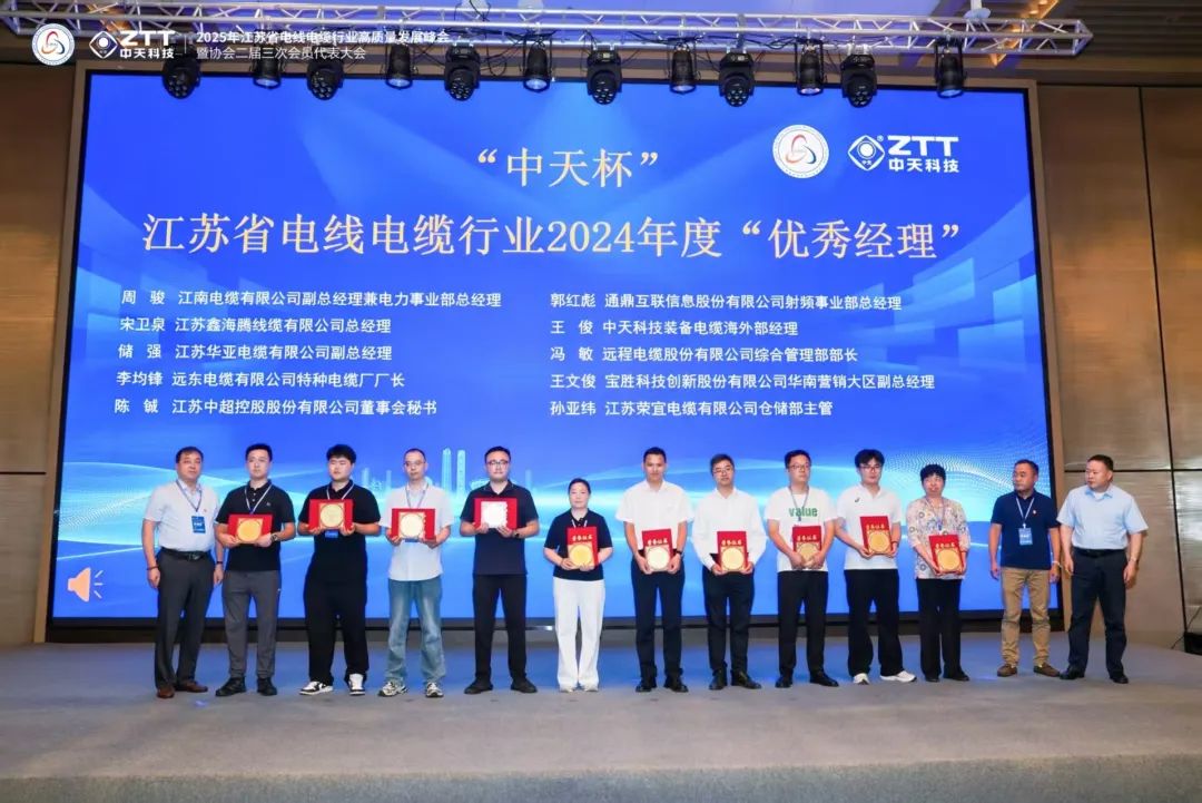 捷报再传!在2024年度江苏省线缆行业评选中,江苏中超控股股份有限公司(以下简称“中超控股”)荣膺“2024年度江苏线缆产业高质量创新发展企业10强”!同时,公司董事会秘书陈铖凭借卓越表现,荣膺“‘中天杯’江苏省电线电缆行业2024年度优秀经理”!双喜临门,充分彰显中超控股行业领先地位与蓬勃活力!