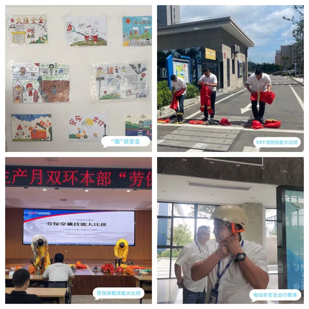 此外,在安全月期间,双环本部还组织了“‘画’说安全”“ERT消防技能大比拼”“劳保穿戴技能大比拼”“电动车安全出行教育”等多场安全活动,引导员工增强安全防护意识,筑牢安全防线,全面提升防护技能与应急处置能力,营造良好的安全氛围,为推动安全生产持续有序进行打下坚实基础。