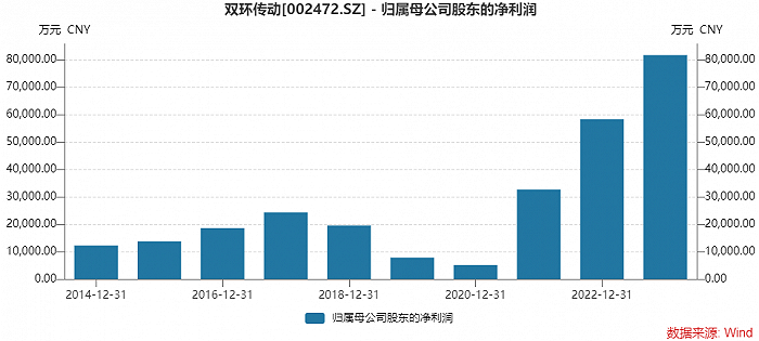 2023年,双环传动实现营业收入81.34亿元,同比增长18.95%;实现归属于上市公司股东的净利润为8.16亿元,同比增长40.20%。