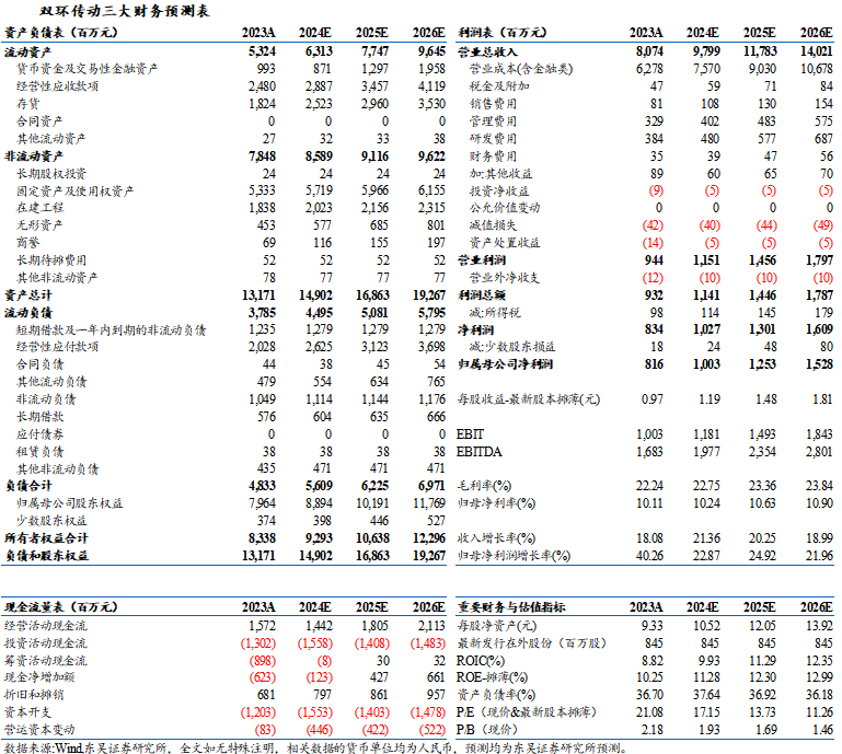 我们维持公司2024-2026年归母净利润为10.03亿元、12.53亿元、15.28亿元的预测,对应的EPS分别为1.19元、1.48元、1.81元,2024-2026年市盈率分别为17.15倍、13.73倍、11.26倍,维持“买入”评级。