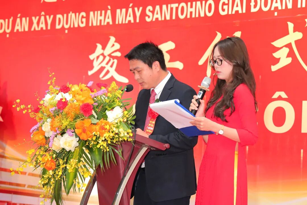 环驱科技总经理李胜致欢迎辞。他向一直关心和支持环驱科技发展的越南政府、深越工业园区、客户伙伴、双环传动集团领导、承建单位等表示诚挚感谢。李胜指出,自2022年双环收购三多乐以来,公司从单品加工到微型驱动总成组装,从塑胶齿轮到金属齿轮,年产能实现大幅提升,并拓展了富士、斑马、京瓷、三星、博世等国际一流企业。他表示,环驱科技一直致力于成为全球智能驱动系统解决方案的引领者,此次越南基地二期厂房的竣工,既是成果,更是起点,标志着越南基地在产能、技术和运营能力上迈上新台阶。环驱将以此为契机,继续秉承“一群人、一件事、一辈子”的双环企业精神,持续深耕民生领域,为助力集团海外战略目标的实现、推动越南当地经济发展贡献力量。