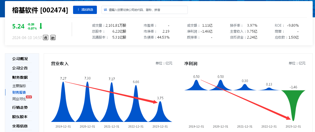 近日,榕基软件披露了2023年年度报告,录得自2010年上市以来首次净利润亏损的成绩。