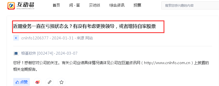 针对目前的亏损,有投资者喊话榕基软件:近期业务一直在亏损状态么?有没有考虑更换领导,或者增持自家股票。