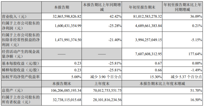 2021年第三季度,立讯精密实现营收328.66亿元,同比增42.42%;实现净利润16.00亿元,同比降25.28%。