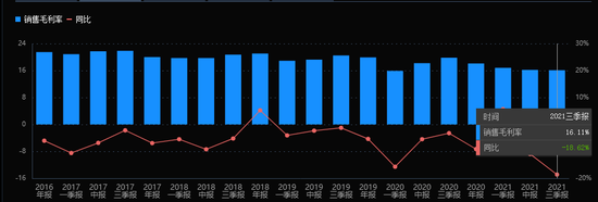 另外,尽管贵为“果链市值一哥”,立讯精密盈利能力却不突出。数据显示,立讯精密毛利率水平常年仅维持在20%左右,2021年前三季度更是跌至16.11%,这一毛利率水平不仅远逊于苹果本尊(2022财年第一季度苹果公司毛利率43.8%),也低于美的、格力等国产家电制造企业。