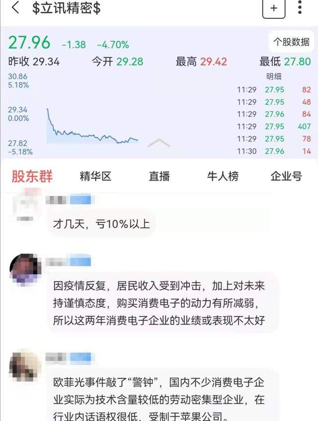 有投资者对此表示,“欧菲光事件敲了‘警钟’,国内不少消费电子企业实际为技术含量较低的劳动密集型企业,在行业内话语权很低,受制于苹果公司”。