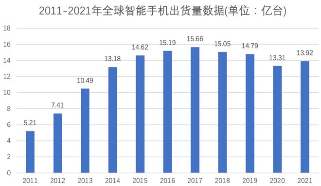图:2011-2021全球智能手机出货量数据,来源:Counterpoint