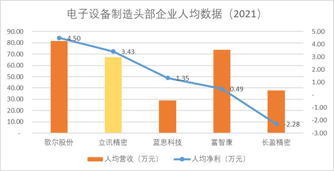 图:电子设备制造企业人均数据2021,来源:Choice金融客户端