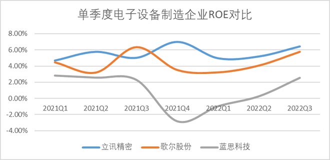 图:单季度电子设备制造企业ROE对比,来源:Choice金融客户端