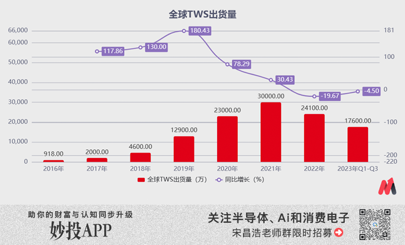 但近年来,在消费电子领域并没有出现爆炸性的产品,而存量的全球的消费电子市场又趋于饱和,无论是手机、还是耳机手表等渗透率已经处于高位,出货量在短期已经接近天花板,行业短期很难像过去那样增长。