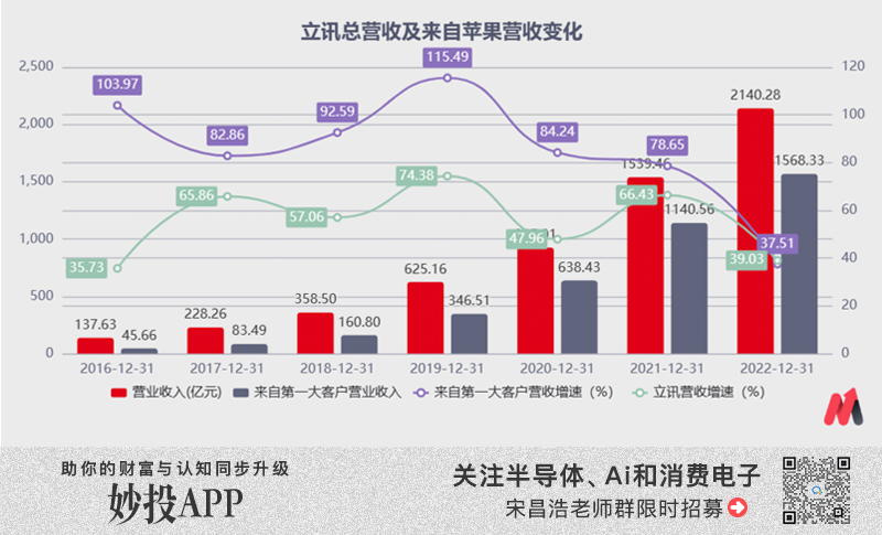 因此,对于立讯来讲,到明年随着消费电子的复苏,立讯的营收或许会有回暖,但像过去能保持50%以上,甚至稳定保持20%以上的增速可能性都不会很大。