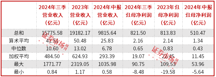 据数据,截至10月30日,申万电子行业有380家公司披露了2024年三季报,实现营收合计15775.58亿元,实现归母净利润合计821.50亿元。对比去年同期13716.88亿元的合计营收和632.61亿元的合计归母净利润,分别同比增长15%和29.86%。