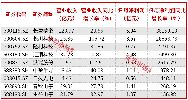 截至10月30日,电子行业共有380家公司发布三季报,整体营收和业绩双双增长,其中,归母净利润合计达821.50亿元,同比增长近30%。个股方面,营收增长翻倍的公司达8家,业绩增长10倍以上的达9家。