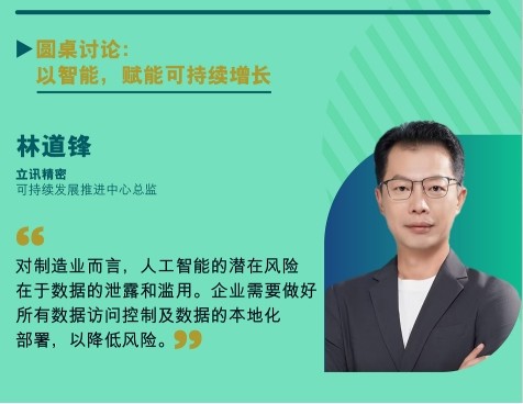 作为本年度《财富》中国ESG影响力榜的上榜企业,立讯精密工业股份有限公司(简称“立讯精密”)受邀出席峰会,其可持续发展推进中心总监林道锋参与“以智能,赋能可持续增长”为主题的圆桌讨论,并分享立讯精密在智能技术应用方面的最新进展,特别是IOE智慧能源管理平台的建设成果。该平台通过智能化手段,有效提升了能源使用效率,为企业节能减排、绿色发展提供了有力支持。