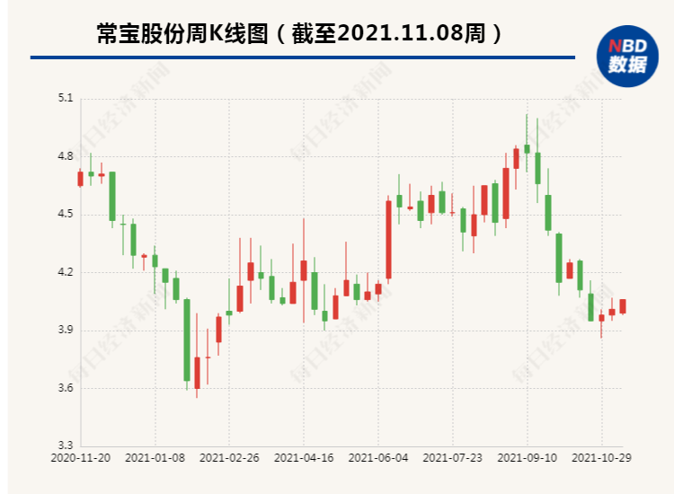 11月8日,常宝股份报收于4.06元/股,上涨1.25%。