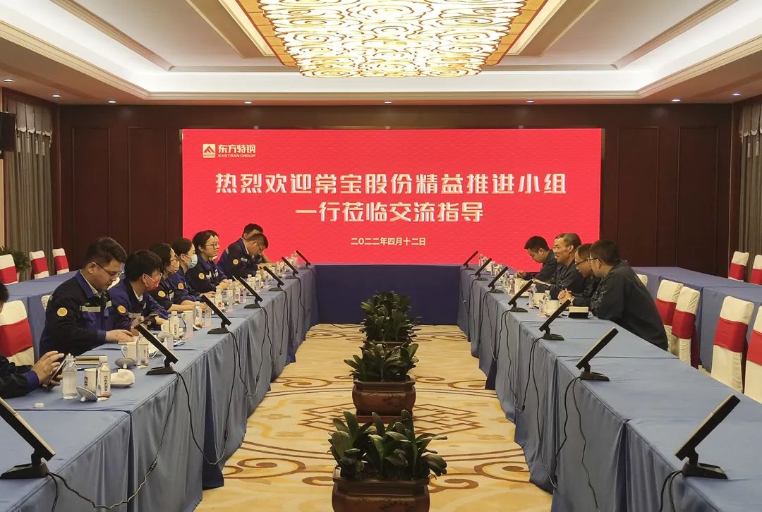 4月12日,常宝股份精益推进小组前往东方特钢学习交流,东方特钢副总经理陈水盛、质量处处长袁智、副处长戴霖、综合办主任陆永梅等领导热情接待,并座谈交流。