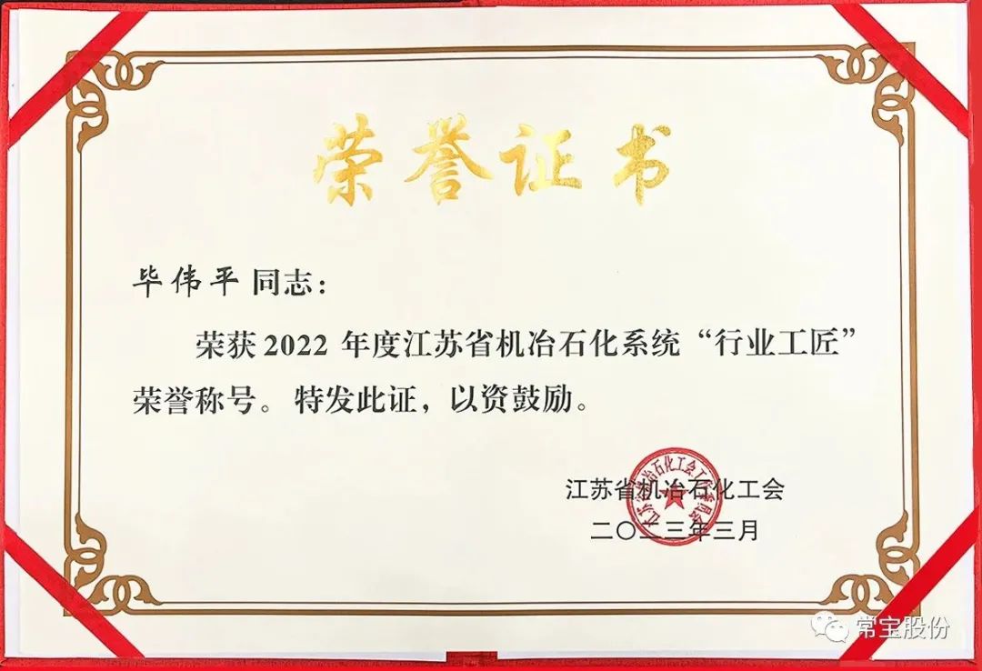 为贯彻落实《新时代江苏产业工人队伍建设改革实施方案》,大力弘扬劳模精神、劳动精神和工匠精神,在全社会营造“劳动光荣、技能宝贵、创造伟大”的良好氛围,展现省机冶石化系统企业工匠的精神风貌。江苏省机治石化工会行业工匠评选出江苏省机冶石化系统“行业工匠”共38 人,常宝德胜DC厂电气点检毕伟平也是其中之一。